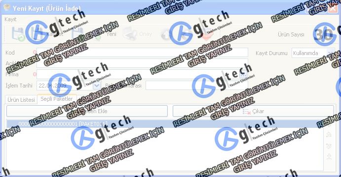 Herhangi bir ürürünün iadesi yapılırken İade kodu, İade ile ilgili açıklama, İade adilecek firma , işlem tarihi gibi bilgiler doldurulmalıdır.