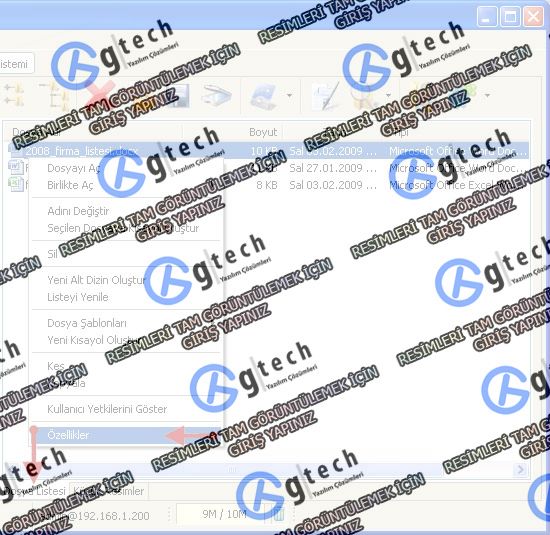 Dosya içerisinde yaptığınız güncellemeleri Sunucuya Hemen göndermek için "Güncellemeleri Sunucuya Gönder" düğmesine tıklamalısınız. Sürüm takibinin yapılması istenilen dizin Klasör tarayıcısında yada Dosya alanında iken seçilir fare ile sağ tıklandığında açılan seçeneklerden "Özellikler" komutu seçilir. |