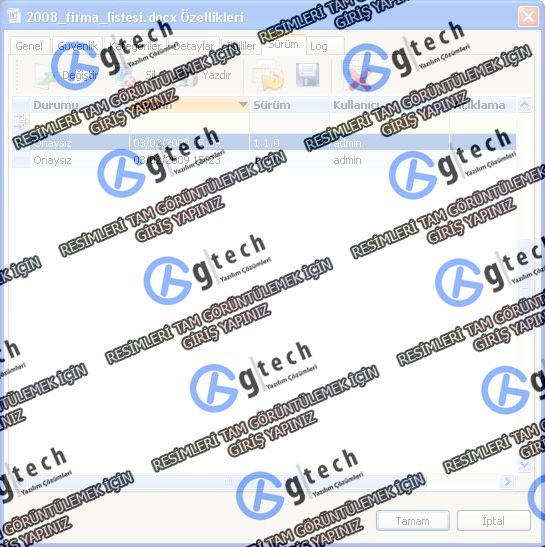 | Dosyanız üzerinde her değişiklik yaptığınızda Sürüm alanınındaki versiyon bir rakam artacaktır. Dosyanın geçmiş sürümlerini dosya içerisindeki değişiklikleri görmek için sürümlerin olduğu ekranda her satırdaki dosya açılarak içerisinde hangi değişikliklerin yapıldığı görüntülenebilir. Dosyaları açmak için dosyaların üzerine çift tıklanabilir ya da "Dosya Aç" simgesi tıklanarak dosya açılabilir. |